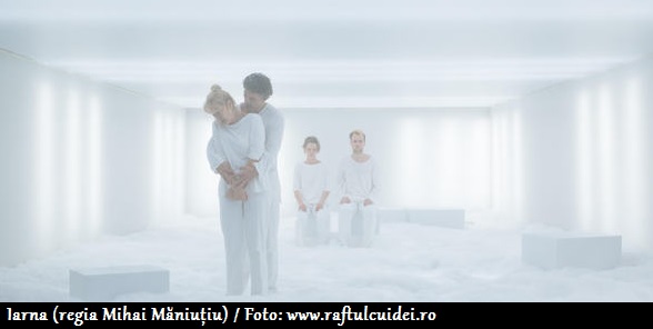 Înainte de a cumpăra biletele, am citit câte ceva despre Iarna. Și m-a intrigat puțin faptul că nu cred că a existat recenzie sau comentariu care să nu conțină cuvintele atipic și experimental. Părerile erau împărțite. Multă lume aborda un ton mult prea critic, deși era evident că nu înțeleseseră foarte bine spectacolul. Ceea ce m-a făcut să cred că spectacolul nu este pentru toată lumea. Și m-am gândit că e foarte probabil să nu rezoneze nici cu gusturile mele în materie de teatru… Dar, din nou, distribuția a fost imposibil de trecut cu vederea. Iar după ce am citit un text de pe Raftul cu Idei, semnat de Alina Gosa, am decis că ar trebui să merg la piesa regizată de Mihai Măniuțiu.