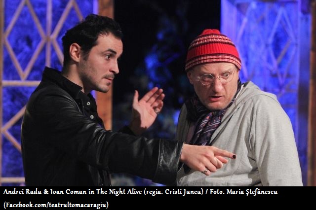 Dar iată că am scris ceva. Sper că nu v-am plictisit cu pălăvrăgeala mea despre teatru… Și sper că v-am convins să mergeți și voi la The Night Alive dacă aveți drum pe la Ploiești. Nu, nu aș spune că The Night Alive e un spectacol pentru oricine. Nu e. E un spectacol dur în esență, însuflețit pe alocuri de o sensibilitate dulce-amăruie. E un spectacol care te trezește la realitate. Care te provoacă să recunoști că lumea aia de pe scenă e cât se poate de vie și există acolo undeva, nu foarte departe de tine. E o dramă în care se împletesc abil tușe de comedie care nu fac decât să potențeze și mai mult mesajul ascuns la vedere în textul lui Conor McPherson. E o frescă aproape violentă, dar în același timp temperată, a acelor unghere ale societății despre care nu ne place să vorbim. E un spectacol altfel. Și uneori chiar avem nevoie de spectacole altfel… Long story short, e un spectacol de văzut. Pentru poveste, pentru mesaj, pentru actori… Deci, ne revedem în ianuarie la teatru, da?