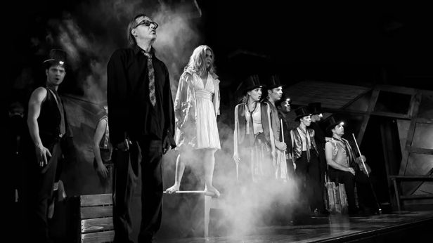 Și trebuie să vă povestesc neapărat despre distribuție… Nu știu dacă Alexander Hausvater alege întotdeauna cei mai potriviți actori pentru fiecare partitură în parte, sau dacă știe cum să scoată la iveală tot ce-i mai bun în niște oameni talentați – indiferent care ar fi aceștia – pentru ca mai apoi să creioneze împreună personaje pur și simplu fascinante… Cert e că Barbă albastră nu e doar o lecție de regie, muzică și scenografie, ci și o demonstrație superbă de actorie… Crina Matei? Impecabilă. Ținută. Voce. Expresivitate fantastică. Mult curaj, căci nu-i tocmai simplu ce face ea acolo pe scenă… Ada Navrot? Nu ai cum să nu o iubești, indiferent de personaj 🙂 Băieții? Marius Stănescu te face să vezi direct în sufletul personajului său, și asta nu-i chiar la îndemână oricui. Datorită lui vrei să-l înțelegi pe Herr Doctor Schaad. Îi simți durerea, te pui pentru o clipă în locul lui și te doare și mai tare când realizezi că nu-i nimic mai rău pe lume decât să nu fii capabil să iubești… Asta în timp ce Adrian Ciobanu însuflețește fin și iscusit un personaj deloc ușor de iubit de public. Iar pe lângă ei patru, alți zeci tineri frumoși și talentați care completează în vervă tabloul ăsta minunat 🙂